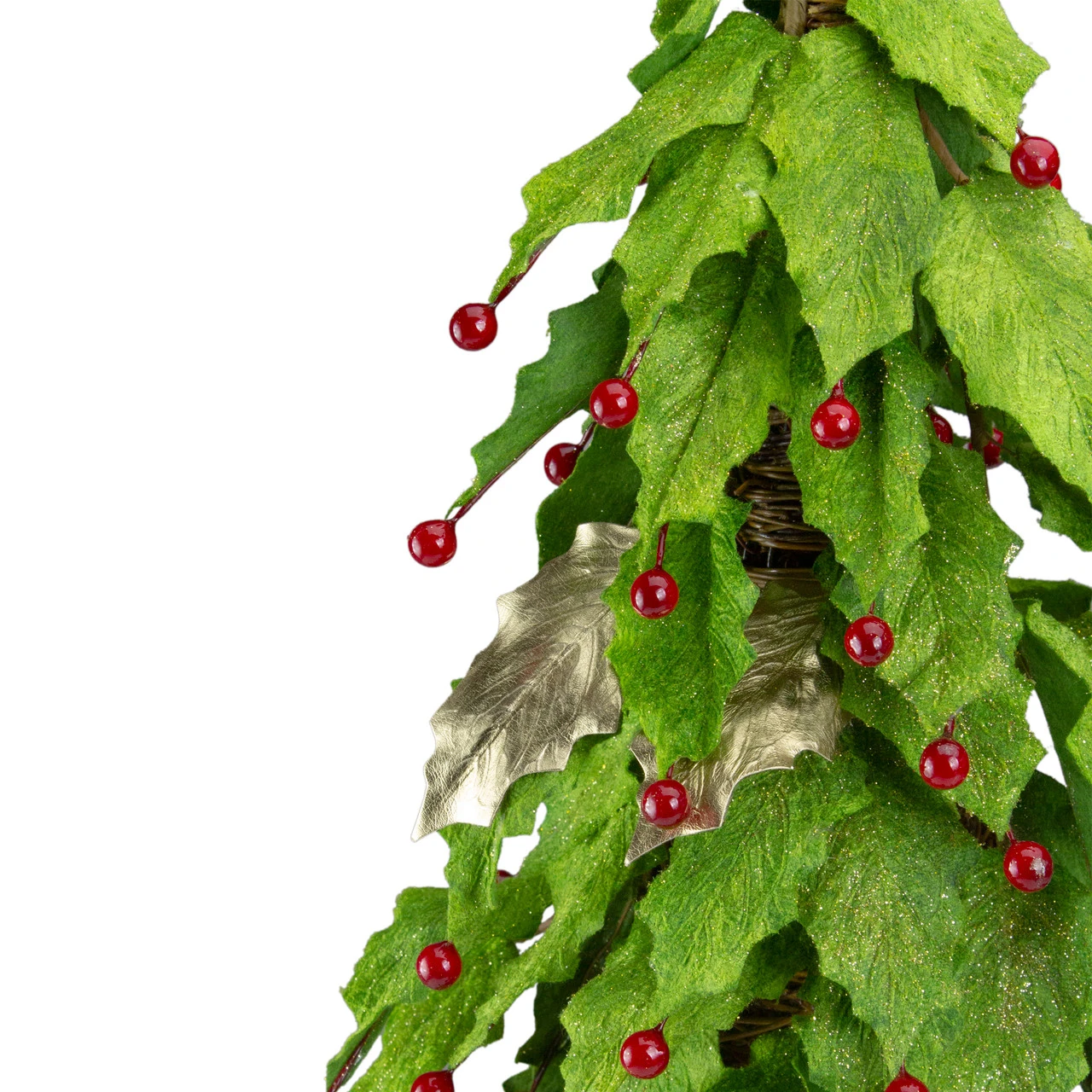 Features the night red holly berry and leaf artificial Christmas cone tree
