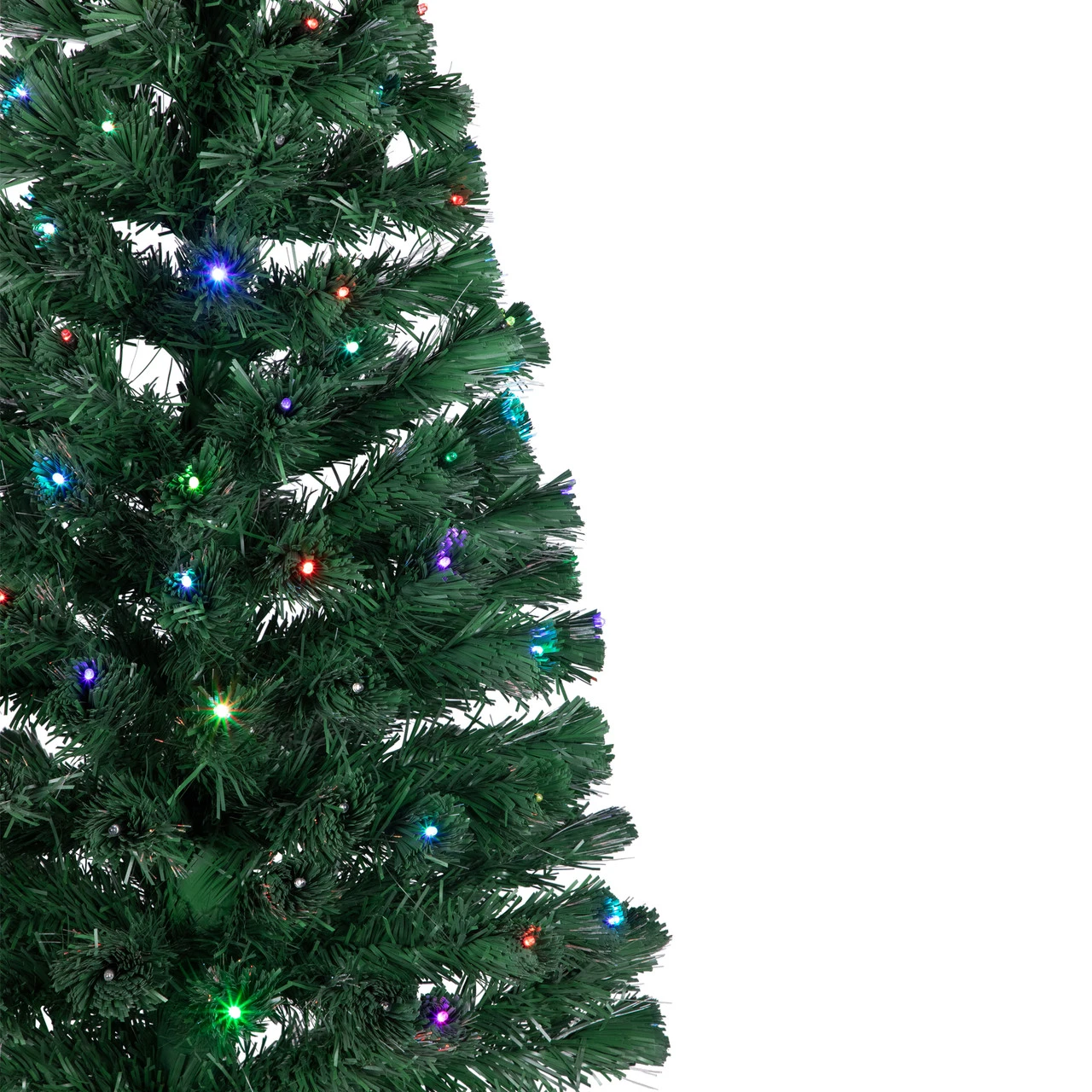 Prelit fiber optic tree has a multi-color wheel at base