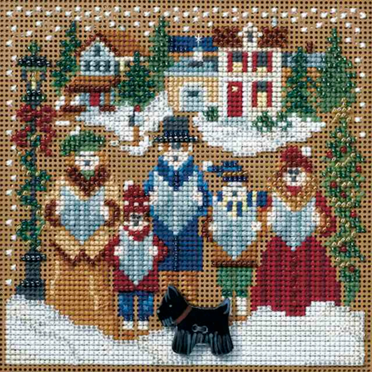 Caroling Beaded Cross Stitch Kit – Christmas Village