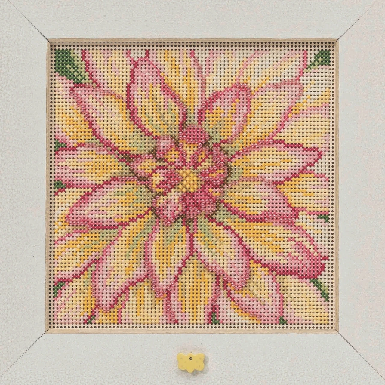 A pink-tipped Dahlia awaits! Makes one Dahlia design suitable for framing. Kit design is stitched on included 14 count perforated paper. Alternatively, design can be stitched on 28 count fabric (not included) for use on pillows, purses, and other fabric-based projects.