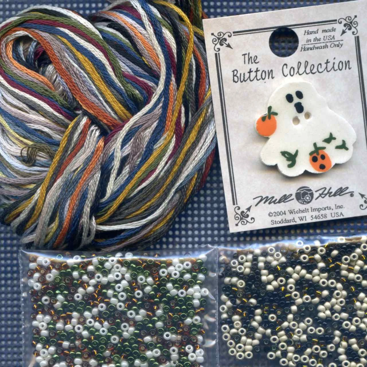 Materials Included: Mill Hill Glass Beads, Mill Hill Ghost Ceramic Button, Mill Hill 14 count Painted Perforated Paper, floss, needles, and chart with instructions