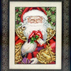 Winter White Santa Cross Stitch Chart Fabric Beads Silk Floss Braid Nora Corbett Mirabilia MD100