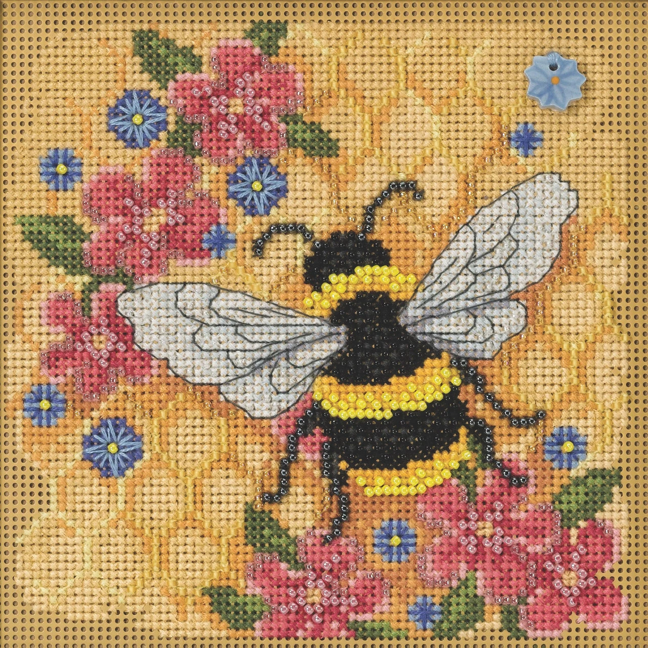 Honey Bee Beaded Cross Stitch Kit Mill Hill Buttons & Beads 2022 Spring Series MH142211 This very colorful Honey Bee is ready for his Spring fling! Makes one Honey Bee design suitable for framing. Kit design is stitched on included 14 Count Painted Perforated Paper. Alternatively, design can be stitched on 28 Count fabric (not included) for use on pillows, purses, and other fabric-based projects. Approximate Design Size: 5.25 x 5.25 inches (13.4 x 13.4 cm) Materials Included: Mill Hill Glass Beads, Mill Hill Ceramic Button, Mill Hill 14 Count Painted Perforated Paper, floss, needles, and chart with instructions. Materials Recommended: 6 x 6 Olive Mill Hill Solid Color Wooden Frame GBFRM2 (sold separately). Copyright 2022 Mill Hill. Kit packaged by Wichelt Imports, Stoddard, Wisconsin. Parts from USA, UK, France, and Japan. Not recommended for children under 9 years of age. Honey Bee Beaded Cross Stitch Kit – Mill Hill Buttons & Beads 2022 Spring Series MH142211
