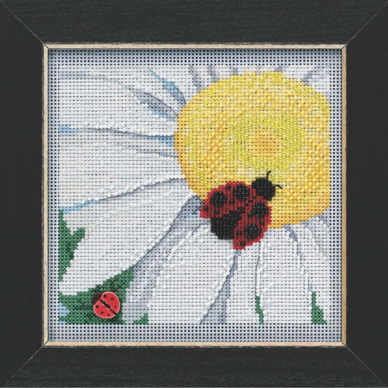 Ladybug on Daisy Beaded Cross Stitch Kit – Mill Hill Buttons & Beads 2021 Spring Series MH142116