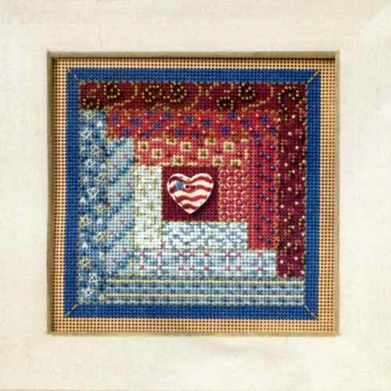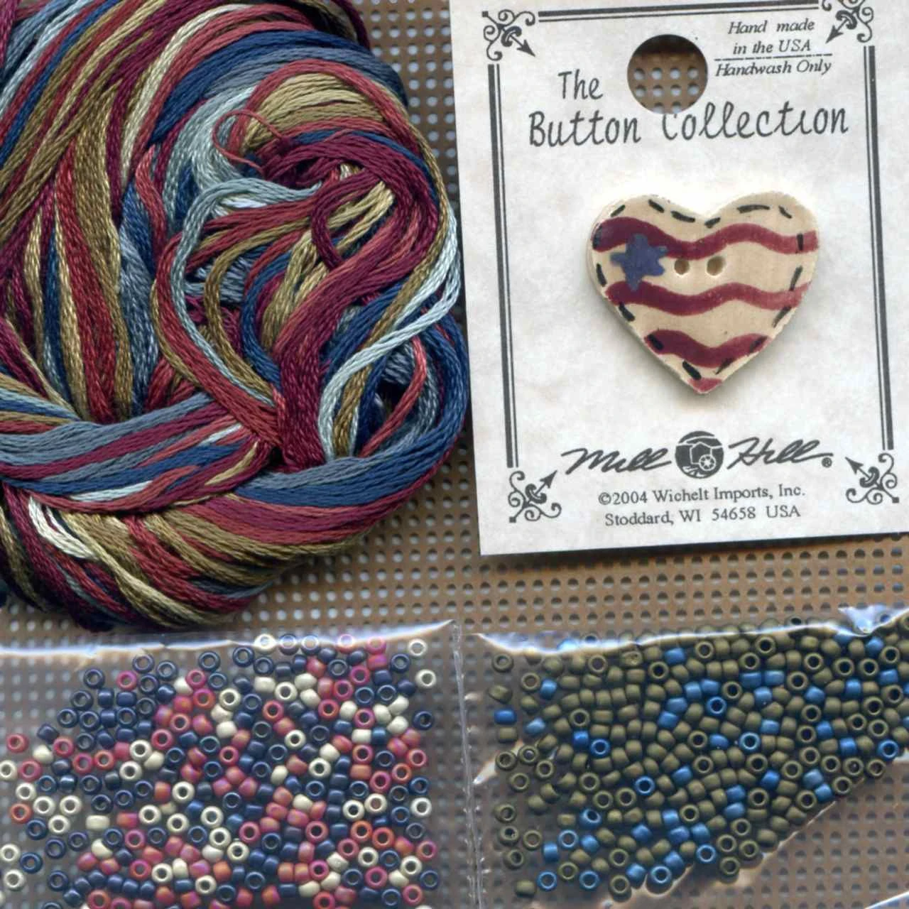 Materials Included: Mill Hill Glass Beads, Mill Hill Old Heart Flag Ceramic Button, Mill Hill 14 count Perforated Paper, floss, needles, and chart with instructions
