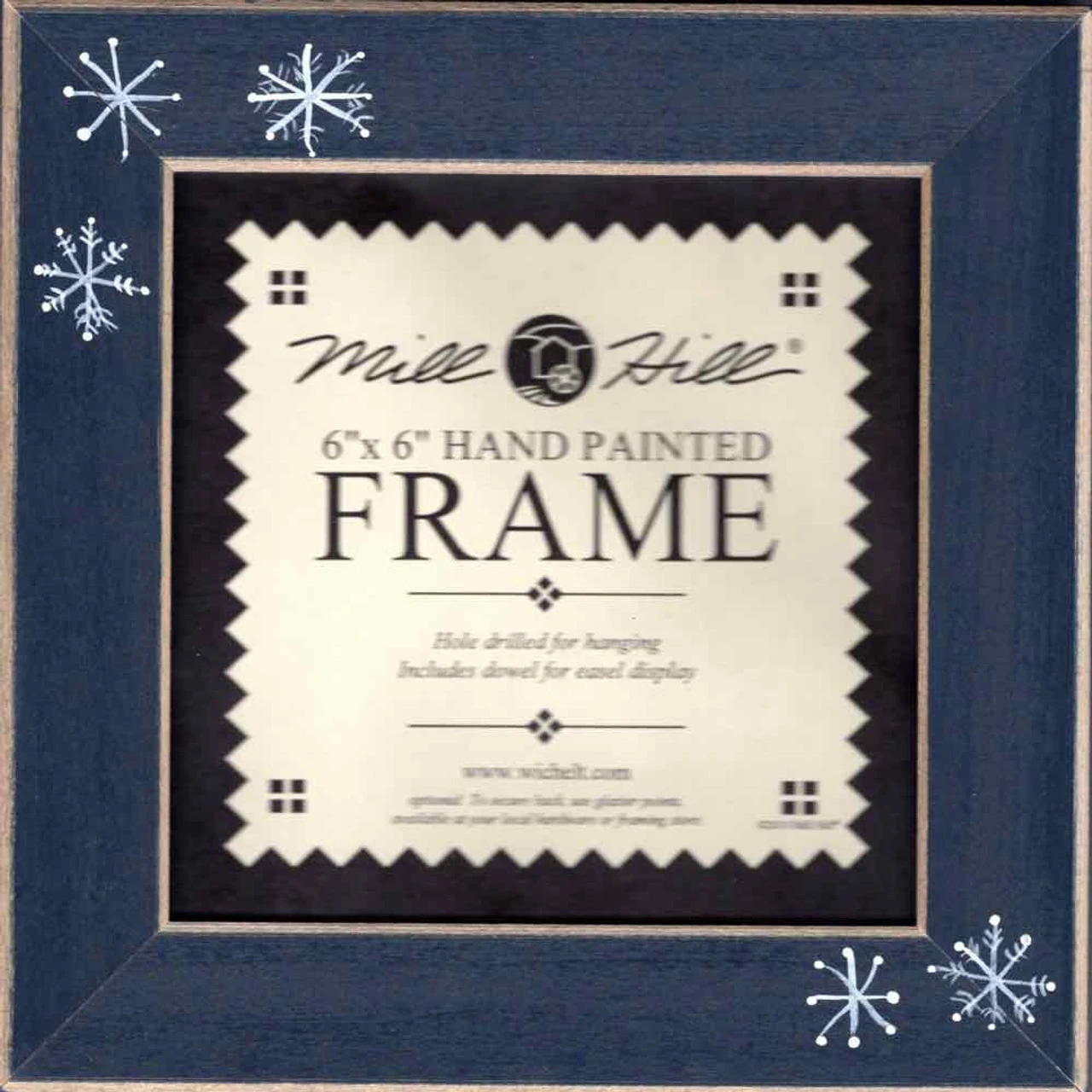 Matte Blue Snowflake Folk Art Frame – Hand Painted Mill Hill 6 x 6 Wooden Frame GBFRFA15