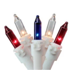 Set Of 100 Patriotic Red, White And Blue Mini Incandescent Christmas Lights 21.25 Ft White Wire