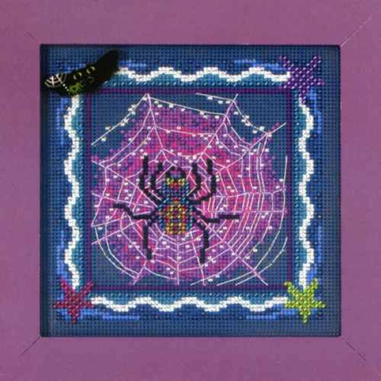 A black spider looms in this Tangled Web! Makes one Tangled Web design suitable for framing. Kit design is stitched on included 14 count perforated paper. Alternatively, design can be stitched on 28 count fabric (not included) for use on pillows, purses, and other fabric-based projects.