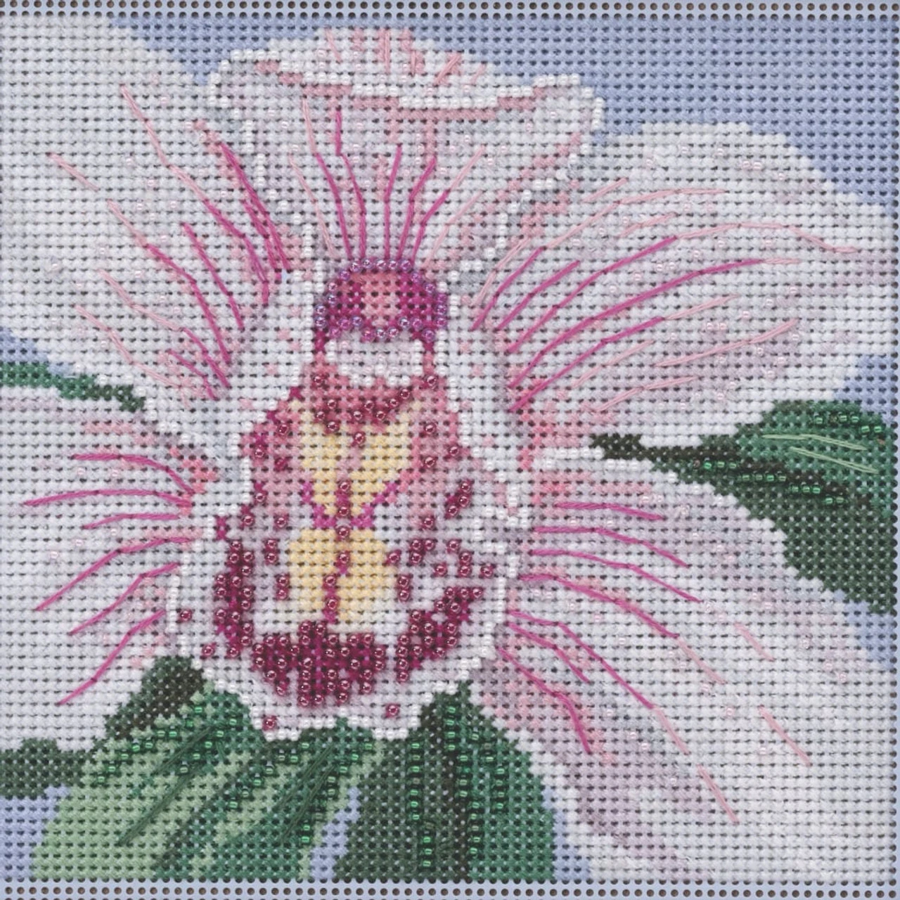 White Orchid Beaded Cross Stitch Kit – Mill Hill Buttons & Beads 2020 Spring Series MH142014