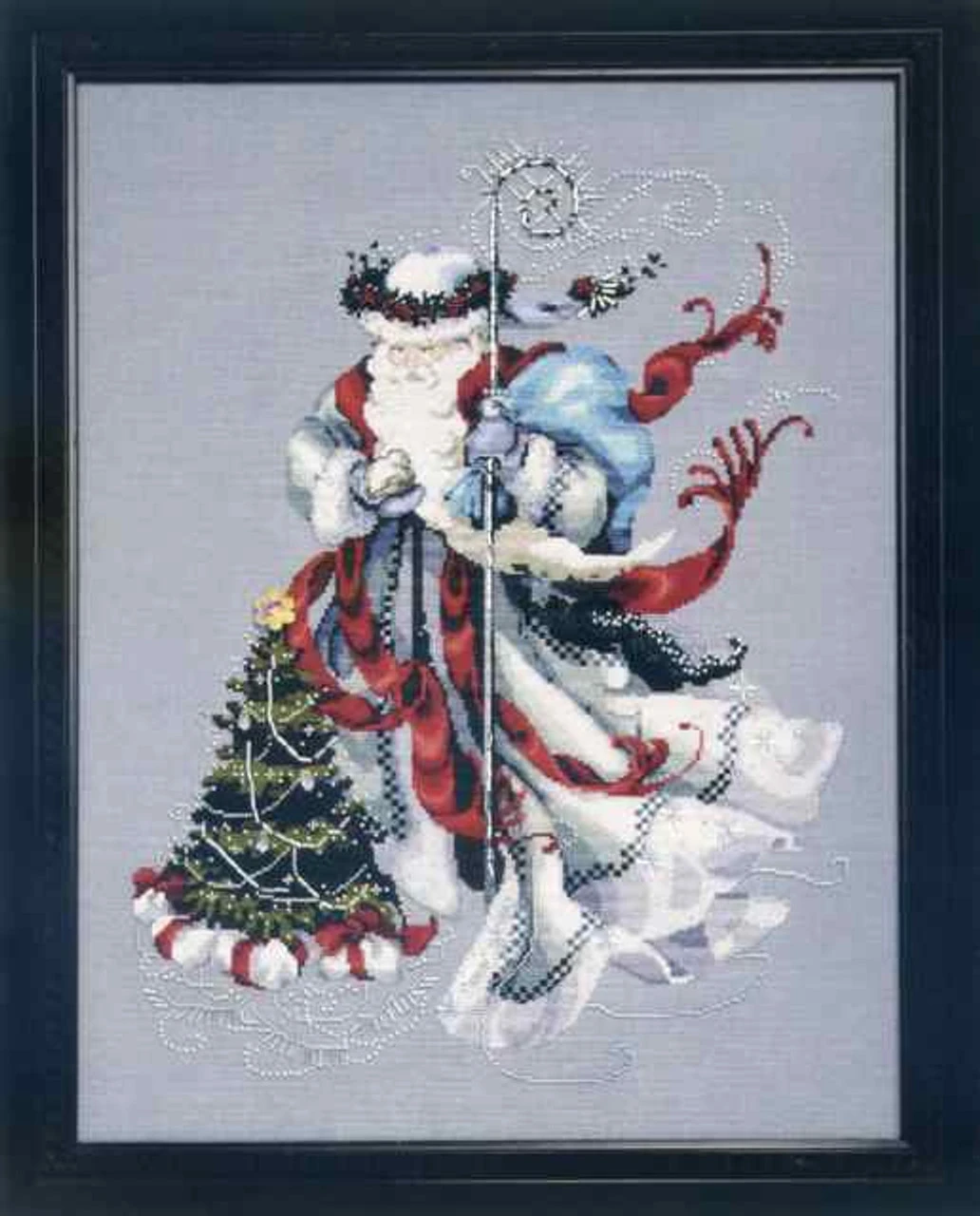 Winter White Santa by Nora Corbett – Cross Stitch Chart, Fabric, Beads, Silk Floss, Braid – Mirabilia Designs MD100